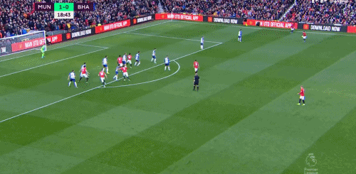 第76分钟,拉什福德左路牛尾巴过人突入禁区左肋6码处小角度射门,瑞恩扑到。第79分钟,曼联获得大禁区线前偏左的任意球。弗雷德主罚射门打高。第87分钟,曼联反击3打2,但马夏尔1VS2禁区前沿射门,瑞恩扑到球。第90分钟,曼联反击,马夏尔直塞,无人防守的拉什福德插上左肋10码处斜射远角打偏。最终,曼联3-1取胜。