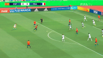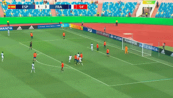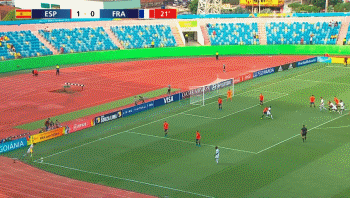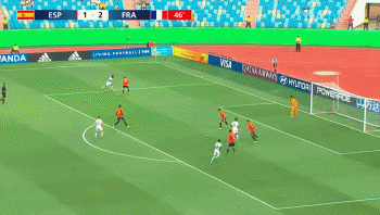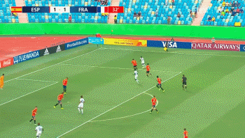 随后法国连进3球,在上半场就以3-1的比分完成了反超。21分钟奥奇切左侧角球传中,效力于巴黎圣日耳曼的夸西后点大力头球破门。36分钟里哈特右路底线横传,姆布库近距离将球送入空门。46分钟姆布库左路横传,西班牙球员莫名其妙在前点将球漏过,里哈特后点将球送入网窝。