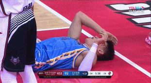 在第四节进行到还剩5分45秒,刘晓宇先是失误回防倒地,眉骨被撞飙血。他继续回防强硬防守,造成了沈梓捷进攻犯规。将功补过的刘晓宇这才下场治疗,如此拼命真硬汉啊。