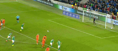 第29分钟,麦克奈尔传中造维尔特曼手球,主裁判判罚点球,北爱尔兰老将斯蒂文-戴维斯主罚罚丢!