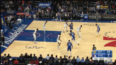 北京时间11月21日讯 ,76人主场迎战尼克斯,西蒙斯首节命中三分。
