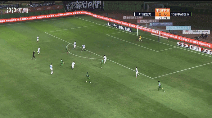 28分钟,奥古斯中路托摆脱登贝莱防守后,禁区弧前左脚打出远射,皮球划出弧线后直接命中球门左下角,程月磊无计可施,国安客场1-0领先富力。