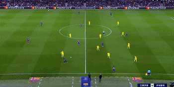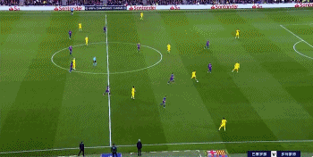 开场之后,中路的梅西是巴萨进攻串联的支点,两条边路的前插则寻求的是宽度拉开,然后,对手防线不能内收形成“人海”站位的情况下,很适合梅西的突破以及与队友进行的传跑。