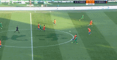 第23分钟,国安后场断球打出反击,巴坎布右肋持球奔袭到禁区,在鲁能后卫的紧逼下右脚抽射,皮球偏出了球门。