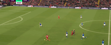 第17分钟,马内在左路接到阿诺德的后场长传球,随后带球内切并在禁区线上直塞,后插上的队友沙奇里甩开埃弗顿整条防线后面对门将低射破门。马内的两次精准直塞球连续助攻,帮助利物浦早早就取得了2-0的领先优势。