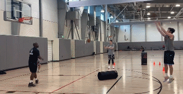 视频中是小丁练习三分球的内容,可以看到,他在弧顶位置连中16记三分球。