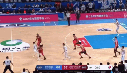 北京队前场发球,翟晓川先发被何忠勉切出界。随后刘晓宇发边线球,在面对这一世界性难题面前,北京队竟然也出现了失误,杨林祎断球成功,推进反击,交给贺希宁,贺希宁冷血3分命中,比赛只剩下2秒钟,深圳队100-99反超!