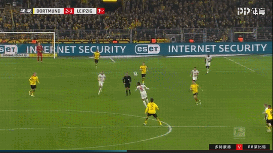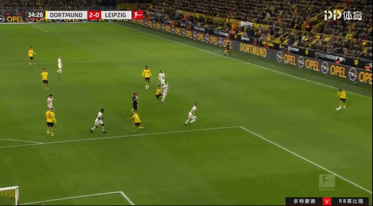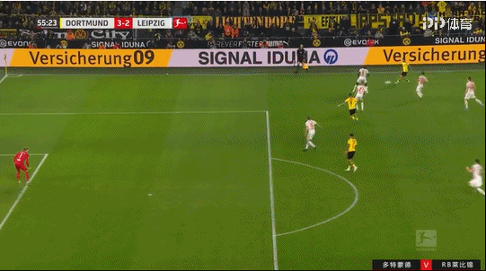 第55分钟,阿什拉夫右路斜塞,罗伊斯右侧底线旁倒三角传中,桑乔禁区中路停球后推射破门,3-2。第68分钟,阿什拉夫右路传中,罗伊斯禁区右侧小角度抽射,球滑门而过。第71分钟,桑乔因大腿肌肉拉伤被皮什切克换下。第77分钟,格雷罗后场蹬踏犯规,莱比锡禁区偏右侧位置任意球。哈尔斯滕贝格的任意球兜出弧线,但被人墙挡出。