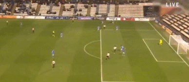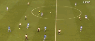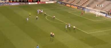 第45分钟,前场右路定位球西班牙人斜送门前,两点争顶后路易斯-洛佩斯凌空射中后卫,弧顶处再打踢高。