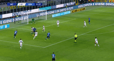 第32分钟,卢卡库禁区内拿球后回敲,加利亚尔迪尼抽射破门,国米2-0领先。