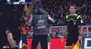 梅德尔站了起来,立刻与塔奇西迪斯顶牛并推搡对手。博洛尼亚主帅米哈一看势头不妙,立刻进场劝架。米哈先是隔离开双方球员,然后安抚梅德尔,最后又对塔奇西迪斯进行了口头劝告。