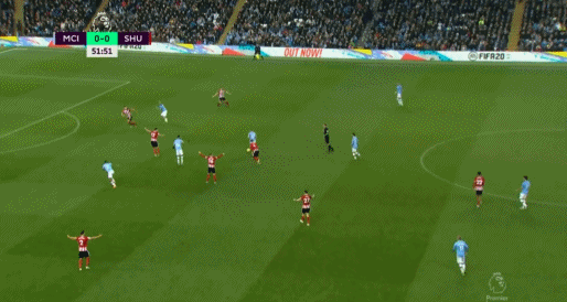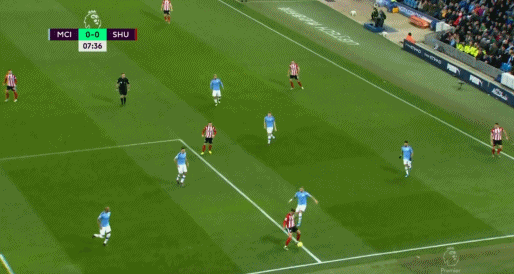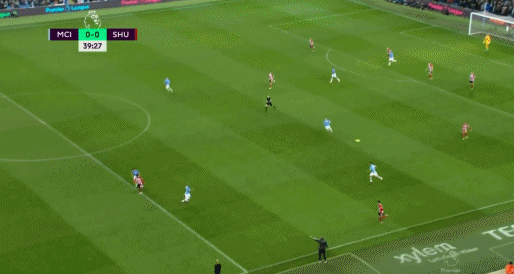第19分钟,德布劳内连续两次主罚角球到禁区,皮球均被防守球员头球破坏。第28分钟,谢菲联左路斜向直塞撕破防守,穆塞右侧肋部高速插上单刀破门,随后主裁判根据VAR视频助理裁判的提醒后示意穆塞越位,进球无效。