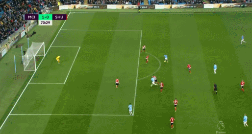 第74分钟,曼城获得前场定位球机会,德布劳内主罚直接攻门,皮球稍稍高出球门横梁。第77分钟,谢菲联前场头球直传,禁区内穆塞得球转身打门,皮球被防守球员封堵出底线。