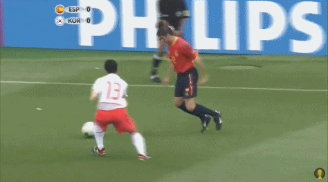 那一天,和华金对位的韩国队左后卫李乙荣度过了难熬的120分钟,他根本无法限制西班牙人的发挥。下半场第50分钟,他放倒华金,西班牙利用这粒定位球头槌破门,然而甘杜尔判罚西班牙球员犯规在先;加时赛刚刚开始,他又被华金突破,后者送出一脚传中,等候在后点的莫伦特斯打进了宣告比赛结束的进球,主裁却因出界再次吹出了这粒点球。