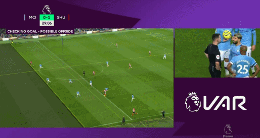在同一时间结束的曼城2-0击败谢菲尔德联的比赛中,同样因为VAR判罚产生争议。