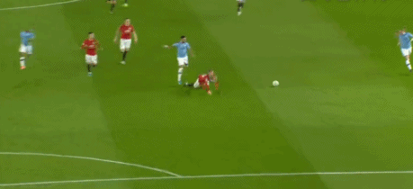 第3个丢球是林德洛夫和菲尔-琼斯联手“贡献”,当时是曼城反击,林德洛夫在中场上前逼抢但莫名其妙地滑倒,等他爬起来一切都晚了,他虽然努力往回跑但这只有象征性的作用,这时候曼联还是有机会守住:菲尔-琼斯和德布劳内在禁区内1对1,德布劳内非常简单的一个晃动再一扣就让菲尔-琼斯失去了平衡,然后德布劳内直接面对德赫亚。