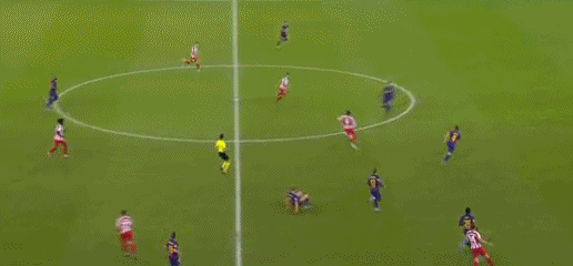 布斯克茨传球,梅西禁区左侧劲射被扑挡后没收。比达尔传球,格列兹曼禁区左侧挑射被奥布拉克盖帽救下。第59分钟,梅西停球晃过萨乌尔后12码处射入左下角,但裁判观看VAR后判罚梅西左手臂触球犯规在先,进球无效。
