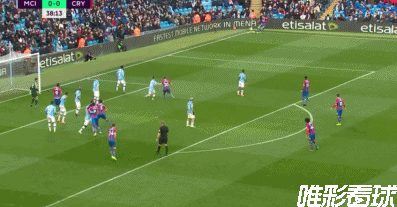 第39分钟,水晶宫获得前场右侧的角球机会,麦卡锡给到后点,卡希尔头球摆渡到禁区右侧,托松的近距离头球攻门命中,水晶宫客场1-0领先曼城。