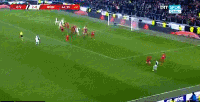 第38分钟,尤文反击,科斯塔前场右路拿球,带球到禁区前横传给弧顶处的本坦库尔,后者拿球杀入禁区中路,在缝隙间找到射门机会,皮球碰到左侧立柱后弹入球门,尤文2-0罗马。