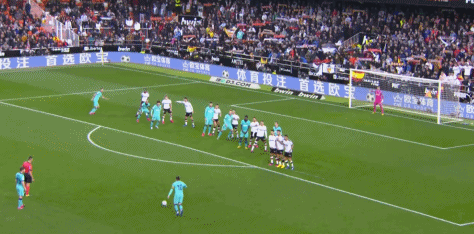 在第68分钟时,梅西禁区左侧远距离不停球直接搓射,皮球稍稍高出横梁。在上赛季对阵贝蒂斯时,梅西曾进过一个这种神仙球,当时贝蒂斯主帅正式塞蒂恩。2分钟后梅西又在点球点右侧头球射门,可惜皮球偏出了近门柱。在第77分钟时,梅西踢出此役质量最高的一次任意球射门,瓦伦门将多梅内克做出了世界级扑救。