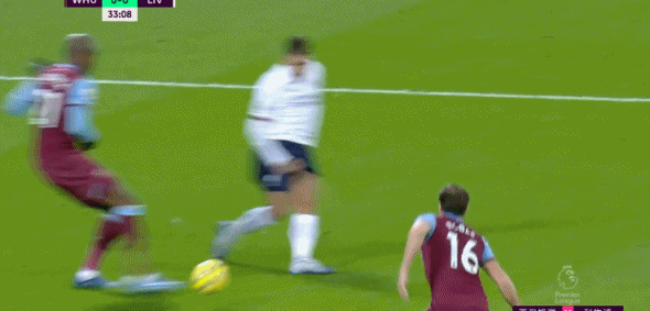 第33分钟,菲尔米诺禁区右侧接到右路传中后停球传向中路,奥里吉小禁区附近得球转身试图突破对手两人防守,伊萨-迪奥普伸腿断抢未果却将其绊倒在地,主裁判判罚点球。12码处,萨拉赫起跑射门一气呵成,皮球骗过法比安斯基飞入球门,1-0,利物浦打破场上僵局。