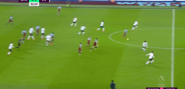 最终全场比赛结束,利物浦在客场以2-0的比分战胜西汉姆,英超跨赛季41轮不败。