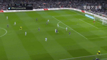 法蒂的第一粒进球发生在第30分钟,他接到梅西的长传后,长驱直入突进莱万特禁区将球打进。主裁在确认var录像没有越位之后,法蒂进球有效!