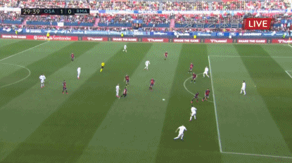 而本场比赛贝尔终于被召入皇马的比赛名单,并且获得了首发出场的机会,但久疏战阵的贝尔显然不在最佳状态。开场仅7分钟,莫德里奇送出精准直传球,贝尔反越位成功后拿球,可惜停球稍大被奥萨苏纳后卫特诺里奥抢先卡位将球护住,随后门将塞尔希奥把球拿到。