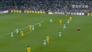 在第23分钟时,梅西浪费了格里兹曼送出的单刀助攻。法国人前场右侧送出撕裂式直传,梅西禁区右侧插上形成反越位。面对罗布莱斯,梅西选择小角度推射,结果贝蒂斯门将用右手下意识地将球挡出。