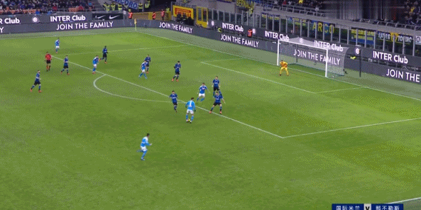 第86分钟,劳塔罗抽射攻门被防守球员封堵出禁区,埃里克森跟上远射偏出底线。第90分钟,比拉吉左路传中,后点接应的丹布罗西奥摔倒,主裁判示意比赛继续。最终那不勒斯1-0小胜国米。