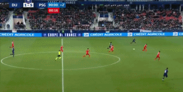 伤停补时第1分钟,卡瓦尼直塞禁区,姆巴佩横敲中路,萨拉维亚包抄推射破门,巴黎最终6-1淘汰第戎。