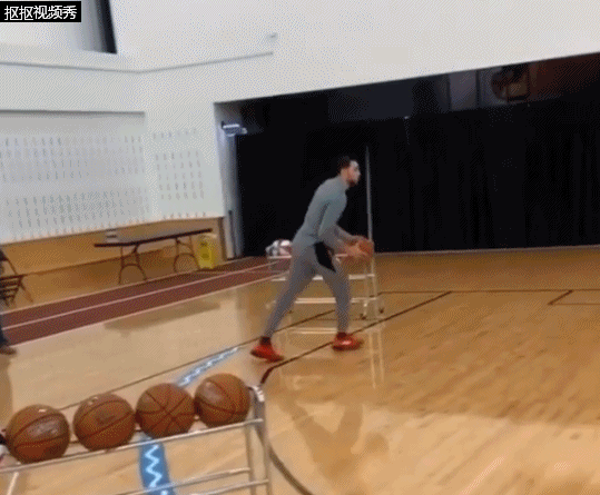 视频中可以看到拉文应该是在进行三分大赛的训练,不过拉文却练起了罚球线360度扣篮等多个扣篮动作。