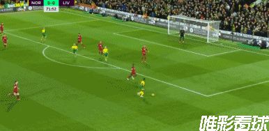 第77分钟,亨德森中圈弧内的长传球直接找到禁区左侧的马内,齐默尔曼冒顶,马内右脚卸下皮球,随后左脚跟进的一脚射门直飞近角,利物浦客场1-0领先诺维奇。