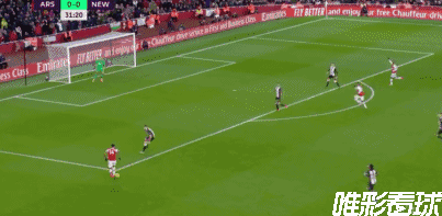 第68分钟,佩佩禁区外右侧高速插上拿球,倒三角回给禁区前沿,奥巴梅扬跟进带到小禁区右侧,一脚小角度吊射击中横梁弹出。