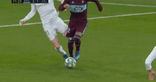 随着比赛的进行,贝尔踢得越来越急躁,甚至把怒气发泄在了对手的身上。第72分钟,贝尔从背后铲倒带球的塞尔塔球员拉菲尼亚,这是一次毫无必要的犯规,而且贝尔当时的铲球动作凶狠几乎没有收脚。幸运的是主裁判只是向贝尔出示了一张黄牌,要知道这样的背后铲人犯规吃红牌也是可以理解的。第84分钟,皇马用门迪换下贝尔,情绪低落的贝尔直接从靠近自己的一侧边线离场,没有和队友击掌。