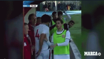 在比赛中,马格里尼换下了本队4号球员。4号在被换下之后,明显情绪有些失控。在坐上替补席前,他对着地上的水瓶发泄式地踢了一脚。马格里尼看在眼里,立刻冲过来,对着4号脑袋就是一巴掌。这一巴掌,使得马格里尼被主裁出示红牌直接罚下。