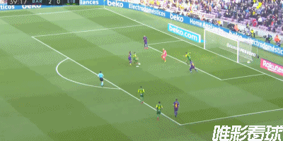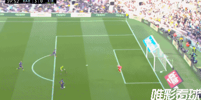 第40分钟,埃瓦尔后场处理球失误,巴萨得球,梅西禁区右侧给到中路的格列兹曼,格列兹曼停球稍大被特赫罗倒地飞铲破坏,皮球来到梅西脚下,梅西面对空门打门得手,西甲联赛在完成帽子的同时帮助巴萨3-0领先。