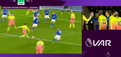 第60分钟,曼城右侧角球开出被解围,京多安外围中路得球右脚抽射被挡普拉埃挡出,京多安随后举手示意对方手球犯规,曼城众将随即跟着向主裁施加压力,主裁查看VAR后判罚点球。随后,阿圭罗主罚右脚推射被小舒梅切尔侧身扑出,曼城错失破门良机。