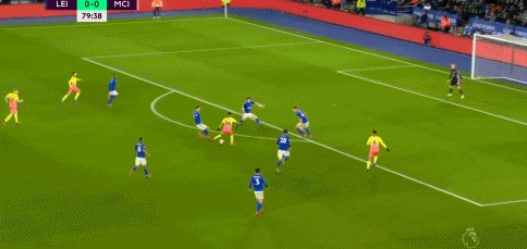 第70分钟,佩雷拉外围中路过顶直塞,瓦尔迪禁区左侧得球左脚打门稍稍偏出。第74分钟,瓦尔迪前场中路接瑟因居长传后向前趟了一步,随后左脚大力抽射被封堵。第77分钟,阿圭罗登场被热苏斯换下。