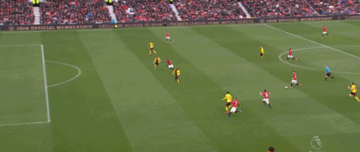 第58分钟,马夏尔前插射门被扑,随后底线拿球轻巧过人后,面对沃特福德包括门将在内的四人防守,轻巧挑射破门。