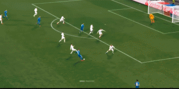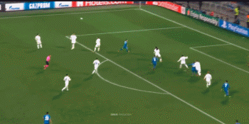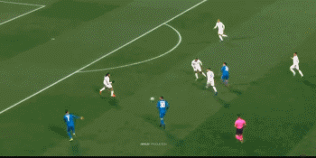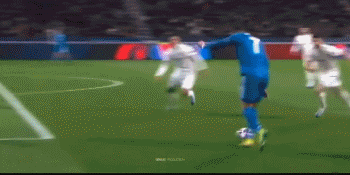 开场第4分钟时,C罗曾有过一次非常精彩的个人表演。在禁区左侧面对三人包夹时,C罗果断选择走外线纵向突破,然后左脚似传似射将球搓向远角。结果皮球擦着门柱飞走,夸德拉多以一步之遥抢点未果。C罗这个动作,最终被算为传中而非射门。