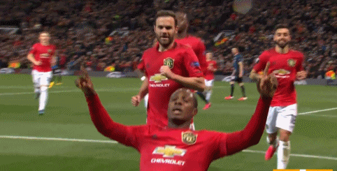 在今天凌晨结束的欧联杯淘汰赛,伊哈洛在第34分钟,接到了马塔横传,打进了自己在曼联的第一个进球。