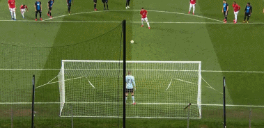 首回合曼联客场1-1战平布鲁日,回到主场后他们期待一场胜利,而冬季加盟的新援布鲁诺-费尔南德斯也首发出场。第23分钟,布鲁日后卫德利禁区内手球,主裁判吹罚点球并将其红牌罚下。随后布鲁诺-费尔南德斯亲自主罚点球,只见他先是小碎步跑动,随后在踢球之前用一次跳动变换节奏,骗倒对方门将后把球踢进另一个方向。