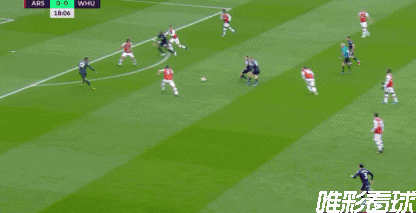 第66分钟,阿森纳传球被挡出,西汉姆联打出快速反击,鲍文左侧突入禁区后,起脚低射被莱诺化解;阿森纳也还以快攻,奥巴梅扬左路突破传中,后点跟进的拉卡泽特侧身凌空抽射,皮球被对方后卫挡出。