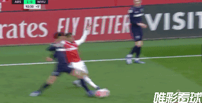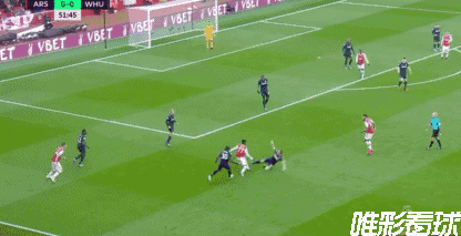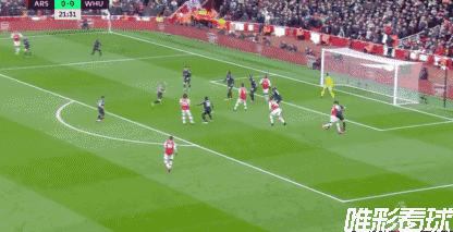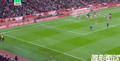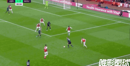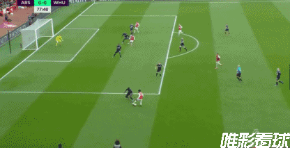 第84分钟,西汉姆联快速反击,鲍文右路内切过程中送出斜塞,阿莱跟进小角度飞身打门,皮球被莱诺封出。