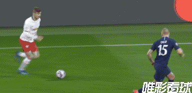 第60分钟,维尔纳前场左侧持球,一路内切带到了禁区弧顶,观察了一下队友选择起右脚爆射,球打高了。