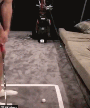 在完成这一挑战后,贝尔先是挥拳庆祝,然后把卷纸对准早就准备好的手机摄像头。通过近景画面可以清晰的看出,高尔夫球恰好被卡在了卷纸筒的洞中。