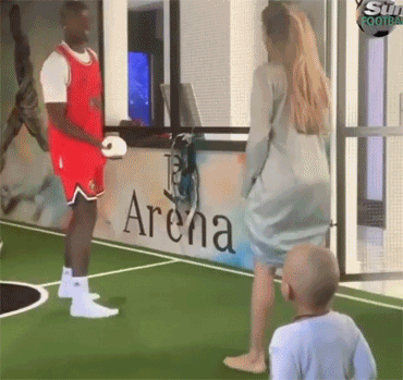 博格巴日前和妻子进行卷纸挑战,不慎砸中了儿子的头