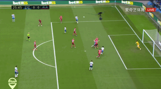 6月13日20点,2019-2020西甲第28轮西班牙人主场2-0阿拉维斯。第26分钟,武磊门前故意手球用身体将球撞入球门,进球被判无效,武磊也被黄牌警告。