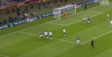 他很幸运,因为在2012年欧洲杯,他获得了这样的机会,虽然也有过“思考人生”的迷惑时刻,但在对阵德国队的半决赛上进球,还是让他在那时成为了意大利人的英雄。